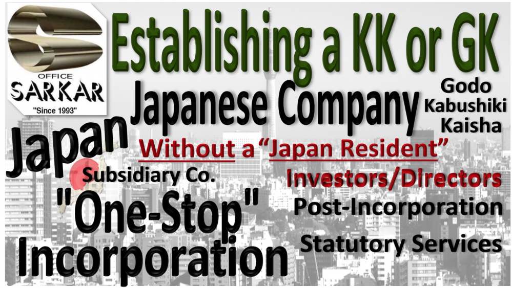 Under the amendment to the Companies Act introduced in March 2015, a foreign company or entrepreneur can register a Japanese Company in the form of Godo-Kaisha (GK)/LLC or Kabushiki-Kaisha(KK)/Joint Stock Corporation in Japan without a ” Japan-Resident”(Promoter/Director).